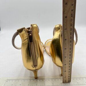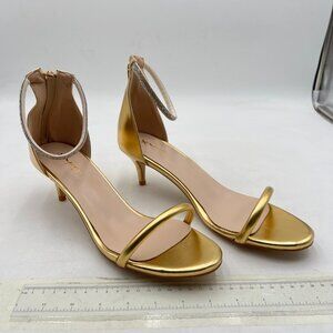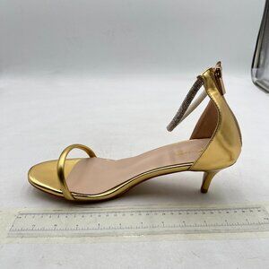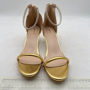 XYD Gold Low Heel Rhinestones Ankle Strap Sandals Open Toe Back Zipper Shoes