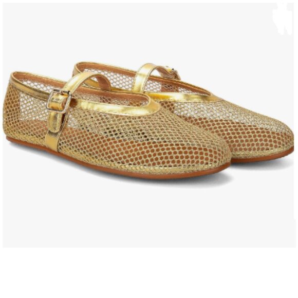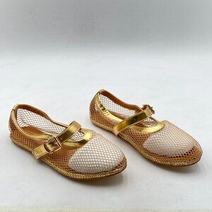 XYD Gold Mesh Ballet Flat Round Toe Single Strap Mary Jane Sparkling Shoes