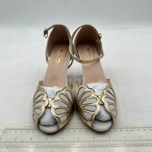XYD Ivory Kitten Heels Peep Toe Ankle Strap Butterfly Latin Jazz Bridal Sandals
