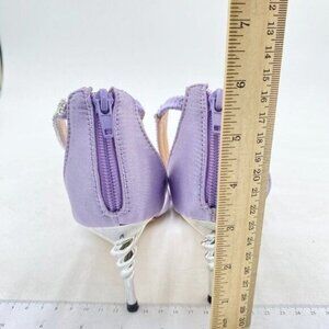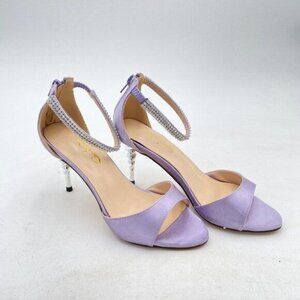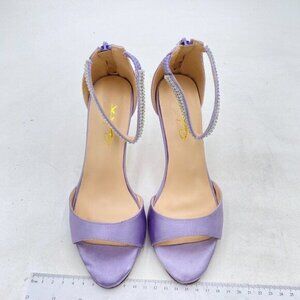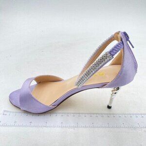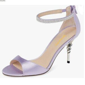 XYD Lavender Open Toe Rhinestones Ankle Strap Sandals Mid Heel Bridal Shoes