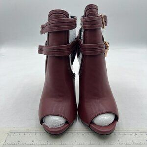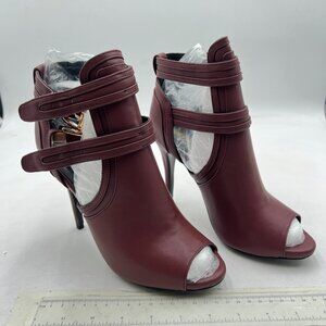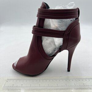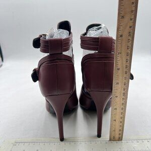 XYD Maroon Peep Toe Sandal Ankle Booties Dual Buckled Straps Stiletto Heels Shoe