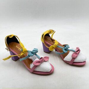 XYD Multicolor Chunky Heels Open Toe Sandals Multi Bows Gladiator Strappy Shoes