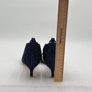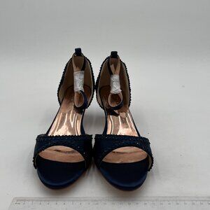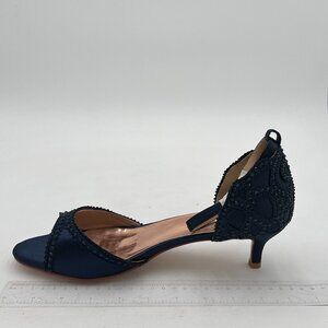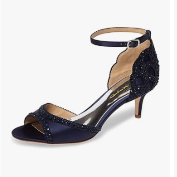 XYD Navy Chic Peep Toe D'Orsay Kitten Heel Rhinestone Studs Ankle Strap Sandals
