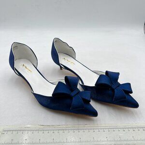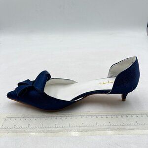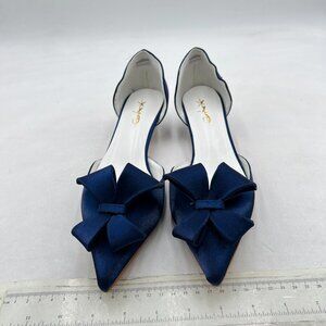 XYD Navy D'Orsay Kitten Heel Bridal Bowknot Pumps Pointed Closed Toe Shoes