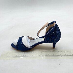 XYD Navy Open Toe Rhinestones Ankle Strap Sandals Low Heel Bridal Evening Prom Dress Shoes
