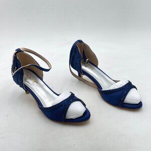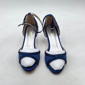 XYD Navy Open Toe Rhinestones Ankle Strap Sandals Low Heel Bridal Evening Shoes