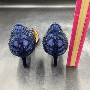 XYD Navy Pointed Toe D'Orsay Kitten Low Heels Rhinestone Shoes
