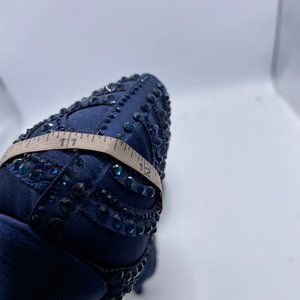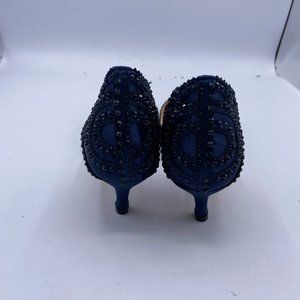 XYD Navy Pointed Toe Low Heel D'Orsay Rhinestone Studs Pump