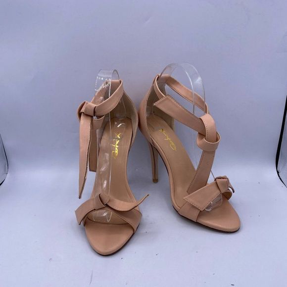 XYD Nude Open Toe Bowknot Stilettos Ankle Strap