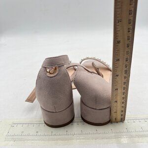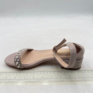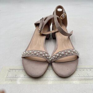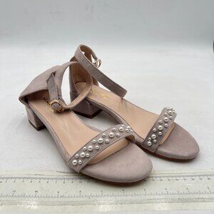XYD Nude Pearls Open Toe Strappy Low Block Heel Sandal Ankle Strap with Buckle