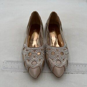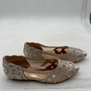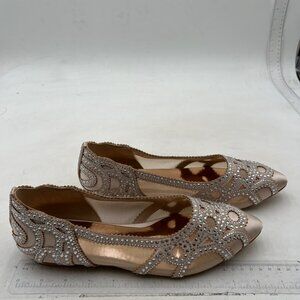 XYD Nude Pointed Toe Rhinestone Flats Mesh Slip-on Crystals Wedding Bride Ballet