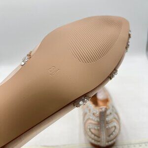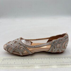 XYD Nude Pointed Toe Rhinestone Flats Mesh Slip-on Crystals Wedding Bride Shoes