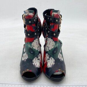 XYD Peony Peep Toe Ankle Bootie High Heels Buckled Double Straps Pumps Shoes