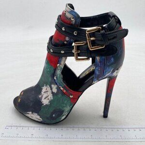 XYD Peony Peep Toe Ankle Bootie High Heels Buckled Double Straps Cutout Pumps Night Club Party Shoes