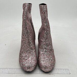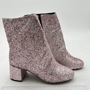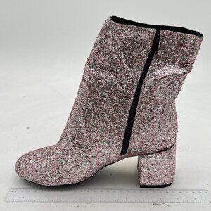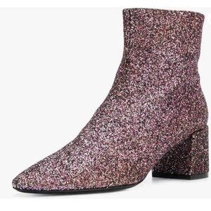 XYD Pink Multi Glitter Block Heel Ankle Boot Round Toe Dress Boot with Zip