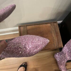 XYD Purple Glitter Knee High Boots. Size 9.5. Pointy Toe. Kitten Low Heel - 1.18-2.36". Short Side Zipper. Paid $110. Too expensive to return. No Tags but are in the original box. $50
