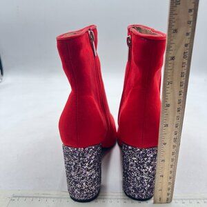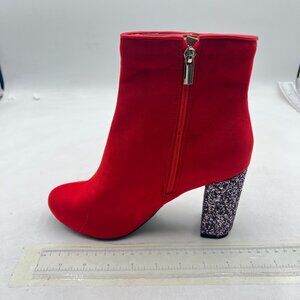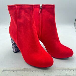 XYD Red Round Toe Glitter Chunky High Heels Party Dress Booties Velvet Boots