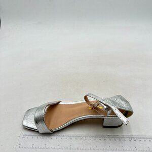 XYD Silver Open Toe Sandals Buckled Low Chunky Heel with Ankle Strap for Wedding