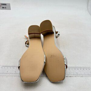 XYD Silver Open Toe Sandals Buckled Low Chunky Heel with Ankle Strap for Wedding Dress Evening