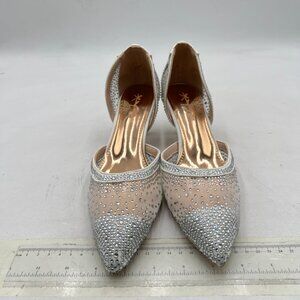 XYD Silver Pointed Toe D'Orsay Kitten Heel Rhinestone Studs Slip-On Pump