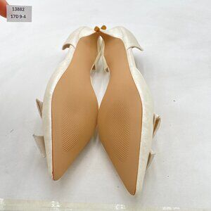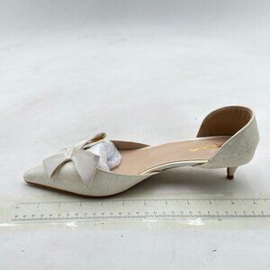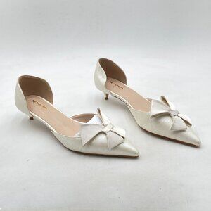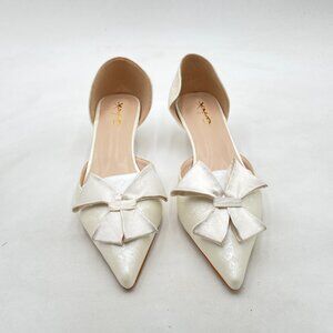 XYD White Floral D'Orsay Kitten Heel Bridal Bowknot Elegant Pointed Toe Pumps