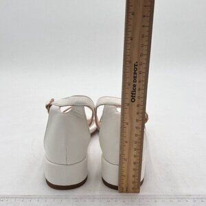 XYD White Heels for Women, Open Toe, Ankle Strap, Buckled Low Chunky Block Pumps for Wedding Dress or Evening Flats
