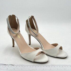 XYD White Open Toe Rhinestones Ankle Strap Sandals High Heel Bridal Evening Shoe