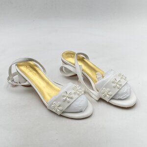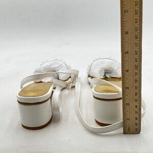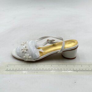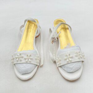 XYD White Pearl Flower Bridal Chunky Sandal Ankle Strappy Open Toe Circular Shoe
