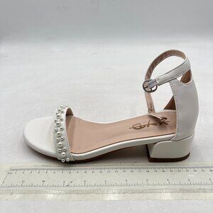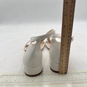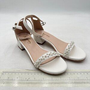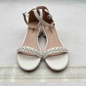 XYD White Pearls Open Toe Strappy Low Block Heel Sandal Ankle Strap Shoes
