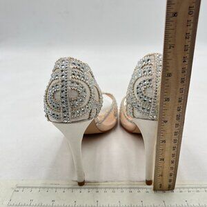 XYD White Peep Toe Half D'Orsay Mesh Pump Crystal Studded Slip On High Heel Shoe