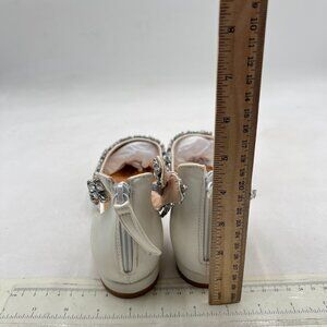 XYD White Pointed Toe D'Orsay Wedding Flat Sandals Sparkly Rhinestones Ankle Strap Low Heel Dress Shoes with Zipper