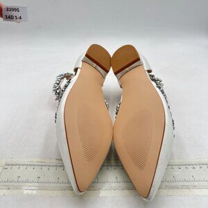 XYD White Pointed Toe D'Orsay Wedding Flat Sandals Sparkly Rhinestones Dress Sho