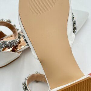 XYD White Pointed Toe D'Orsay Wedding Sparkly Rhinestones Ankle Strap Sandals