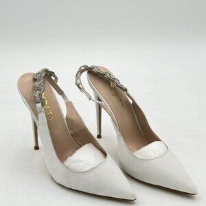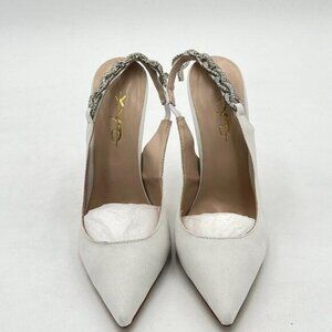 XYD White Pointed Toe High Stiletto Rhinestones Slingback Sandal for Office Lady