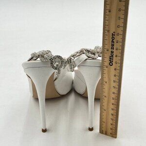 XYD White Pointed Toe High Stiletto Rhinestones Slingback Sandals for Office Lady Party Dressy Pumps Shoes