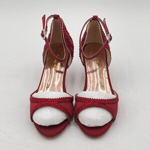 XYD Wine Chic Peep Toe D'Orsay Low Heel Rhinestone Stud Ankle Strap Sandals Satin Shoes for Wedding Ballroom