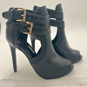 XYD Women Peep Toe Ankle Bootie High Heels Buckled Double Straps Cutout Fashion