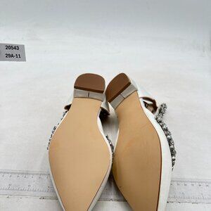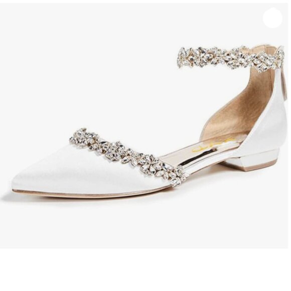 XYD Women Pointed Toe Wedding Flat Sandals Sparkly Rhinestones Ankle Strap White