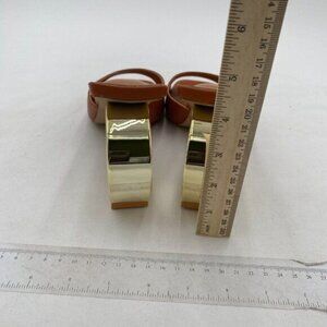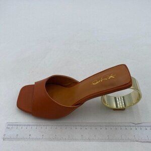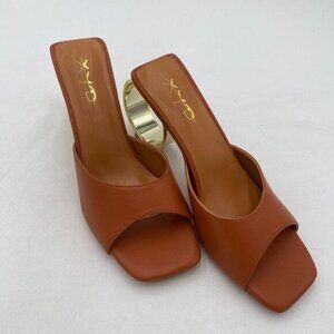 XYD Women Square Toe Slip On Heeled Mules Fashion Gold Ring Mid Heel Slide Sandals Single Band Comfortable Outdoor Slipper Dress Summer Shoes