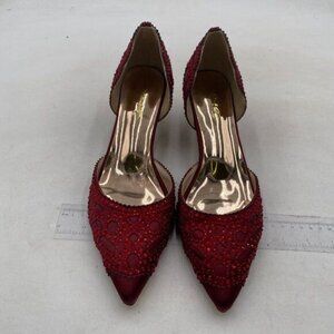 XYD Women's Pumps, Pointed Toe, D'Orsay Kitten Low Heels, Red Rhinestone Studs