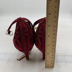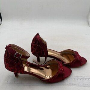 XYD Women's Sandals, Peep Toe, D'Orsay Kitten Low Heels, Rhinestone Studs, Red