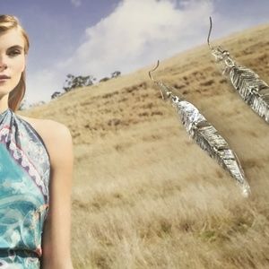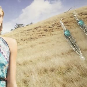 XZP Bohemian Feather Dangle Earrings with Blue Magnesite are New with Box!