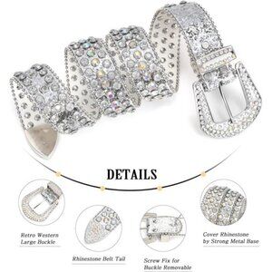 *PREMIUM DESIGN: Stunning rhinestone-studded leather belt featuring a silver-toned western buckle and intricate crystal detailing throughout