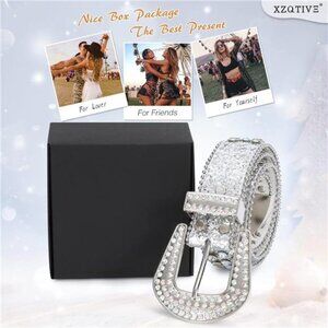 XZQTIVE Cowgirl Bling Studded Leather Belts for Jeans Pants with Rhinestone