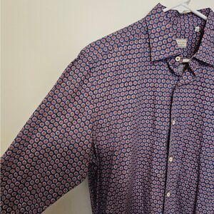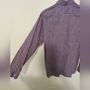 Xacus Mens Long Sleeve Button Down Shirt. Evolution Fit. 15.75 Inch Neck 40 Inch Chest. Blue and Red Donut Pattern. Retired Pattern. Like New Condition.