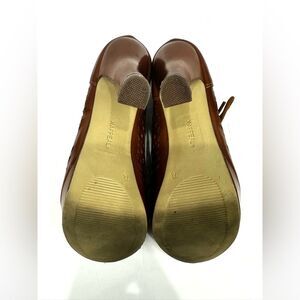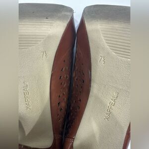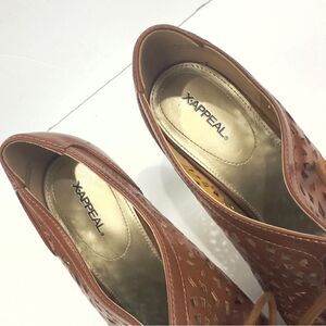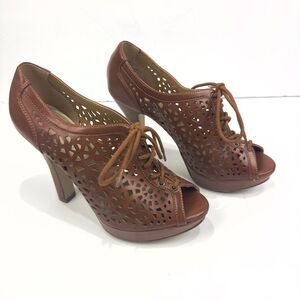 Xappeal Tasha Brown Peep Toe Laser Cut Lace Up Heel Womens Sz 7.5