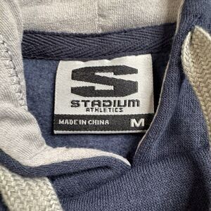 The product is a Men's M blue Xavier Musketeers logo hoodie by Stadium Athletics. It is an officially licensed sweatshirt featuring sewn letters, perfect for basketball fans of the Xavier Musketeers. The hoodie is designed for men and showcases the team's logo and colors, making it a great addition to any fan's collection.