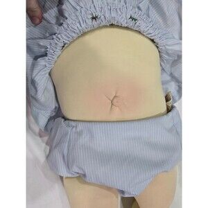 Cabbage Patch all soft body Some light spots Outfit has some light stains Brunette pigtails Blue eyes