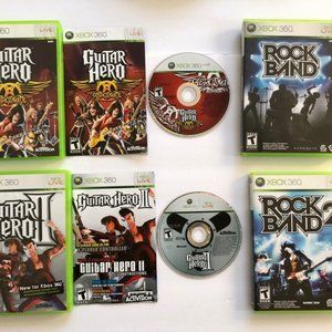 Xbox 360 Guitar Hero Gibson Les Paul Guitar Controller Bundle 6 Games RockBand,