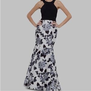 Xcape Elegant Black and White Floral Maxi Ball Gown Mermaid Women's Dress